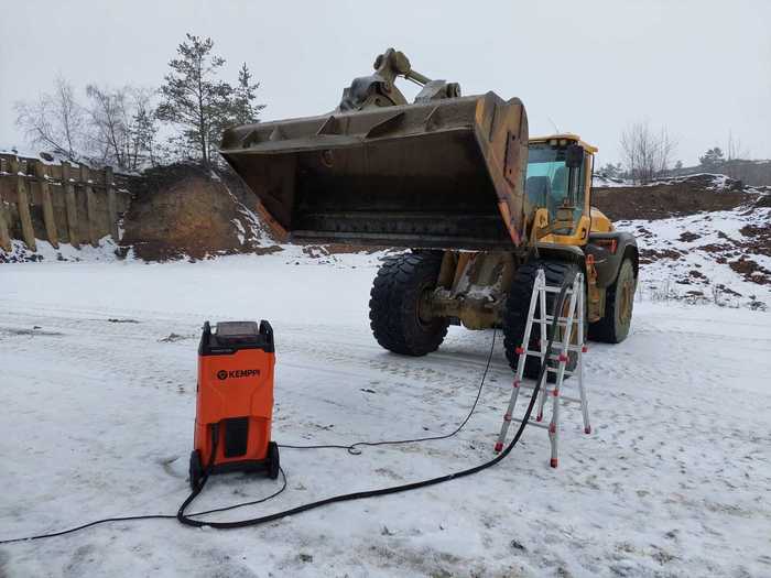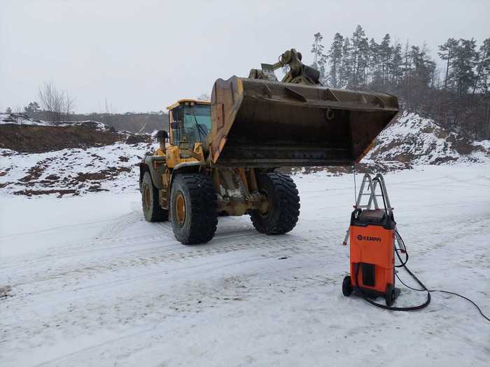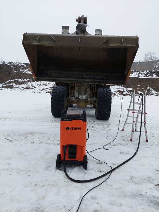 Spolehlivost a legendární kvalita svařovacích zdrojů Kemppi umožňuje zákazníkům společnosti ARC-H provádět servis jejich strojů v jakémkoliv počasí. Na fotografiích můžete vidět zařízení Kempact RA 323A, který se vyznačuje vynikajícím svařovacím výkonem, velkým přehledným LCD displejem a moderním energeticky úsporným zdrojem energie. Více informací o tomto svařovacím zdroji naleznete v záložce "produkty".